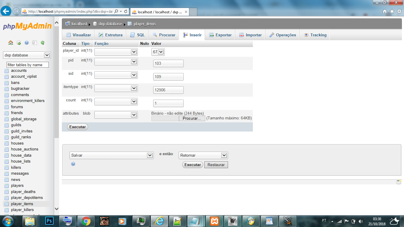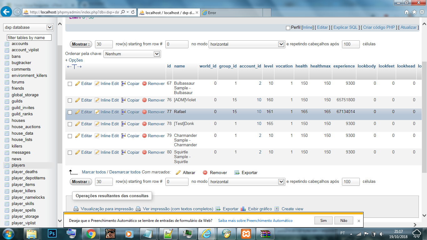 depois em htdocs>config.php:mudei pokemon trainer por (1=>"Bulbasaur", 2=>"Charmander", 3=>"Squirtle"); na linha: /*List of vocation available to choose when creating new character*/