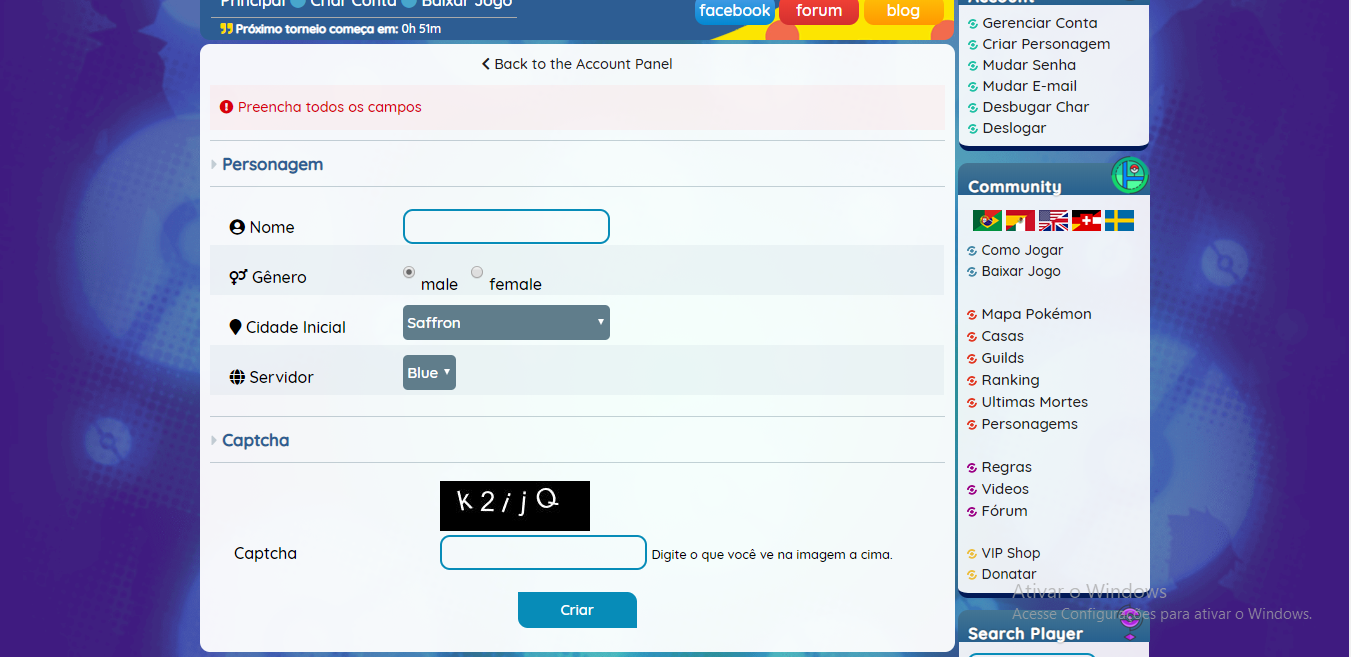 CRIAR PERSONAGEM:
